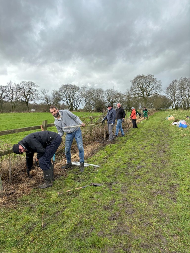 250 Yards of Hedgerow planted near Poringland by a cheerful group of Villagers